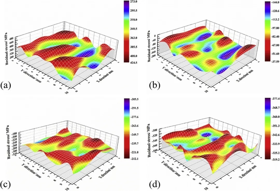 上文我们提到了激光冲击强化(LSP)在处理HEA时的积极结果。激光冲击强化是一种表面改性技术,可以实现材料表面纳米结构,由此实现提高材料的表面性能。江苏大学通过激光增材制造 CoCrFeMnNi高熵合金,然后利用LSP进行后处理。在LSP处理的过程中其显微组织的演变通过EBSD和TEM进行了观察。在横截面上的显微硬度和亚表面的残余应力随着激光能量的变化也给予了报道。结果表明LSP处理之后会导致一层硬化层的形成且具有较高的显微硬度,并将表面的拉伸应力转变为压应力。显微组织得到了显著的细化,这是因为在LSP处理之后在表面形成了纳米尺度的晶粒。一个新颖的晶粒细化的机制是在超高的塑性应变的条件下形成的也给予了提出。表面处理模型给予提出来描述强化行为和显微组织特征之间的关系,由此揭示出LSP处理之后的强化机制。